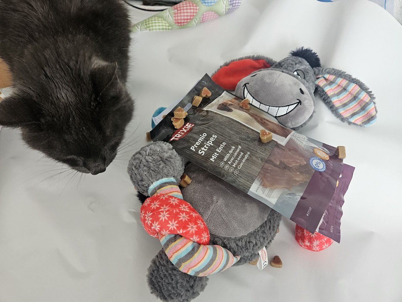 Geschenk einpacken mit tatkräftiger Unterstützung