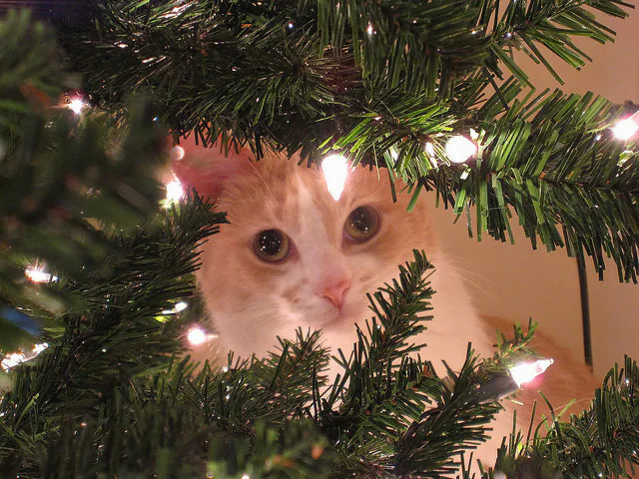 Kiefern sind giftig für Katzen, weil sie Leberschäden verursachen und tödlich sein können. Wenn Sie einen echten Baum aufstellen möchten, nehmen Sie eine Tanne oder eine Fichte. Und Sie sollten regelmässig alle heruntergefallenen Nadeln aufsammeln, egal von welcher Art Baum, denn sie sind spitz und können eine Gefahr für die inneren Organe Ihrer Katze darstellen. Decken Sie den Weihnachtsbaumständer ab, sodass Ihre Katze das Wasser darin nicht trinken kann. Bei künstlichen Weihnachtsbäumen besteht häufig die Gefahr, dass die Katze den Baum umreißt oder gefährliche Dekorationsmaterialien wie zum Beispiel Lametta, Bänder, Schnüre oder Perlen verschluckt. Katzen können zu Streichen aufgelegt sein und sehen alle blinkenden Lichter als Gelegenheit, auf Erkundungstour zu gehen, und nichts ist verlockender als die Chance, auf einen Baum zu klettern, den die Zweibeiner drinnen aufgestellt haben. Es ist immer besser, den Baum wenn möglich am Boden zu sichern, damit Ihr verspielter Vierbeiner den Baum nicht umreisst und jemanden verletzt, sich selbst eingeschlossen. Was Weihnachtskugeln und anderen Baumschmuck betrifft, achten Sie darauf, dass es nicht zu klein ist und ihre Katze es nicht verschlucken kann, und vermeiden Sie alles mit scharfen Kanten. Befestigen Sie den Baumschmuck so gut wie irgend möglich am Baum, sodass Ihre Katze nicht in Versuchung gerät, ihn abzureissen. Und achten Sie darauf, die Baumbeleuchtung auszumachen, wenn Sie nicht da sind und nicht auf Ihr kleines Fellknäuel aufpassen können. So vermeiden Sie, dass Ihre Katze möglicherweise einen elektrischen Schlag bekommt.
